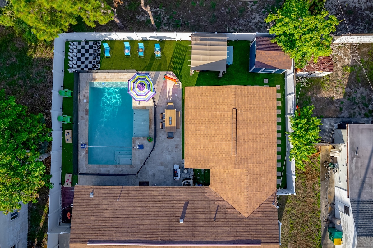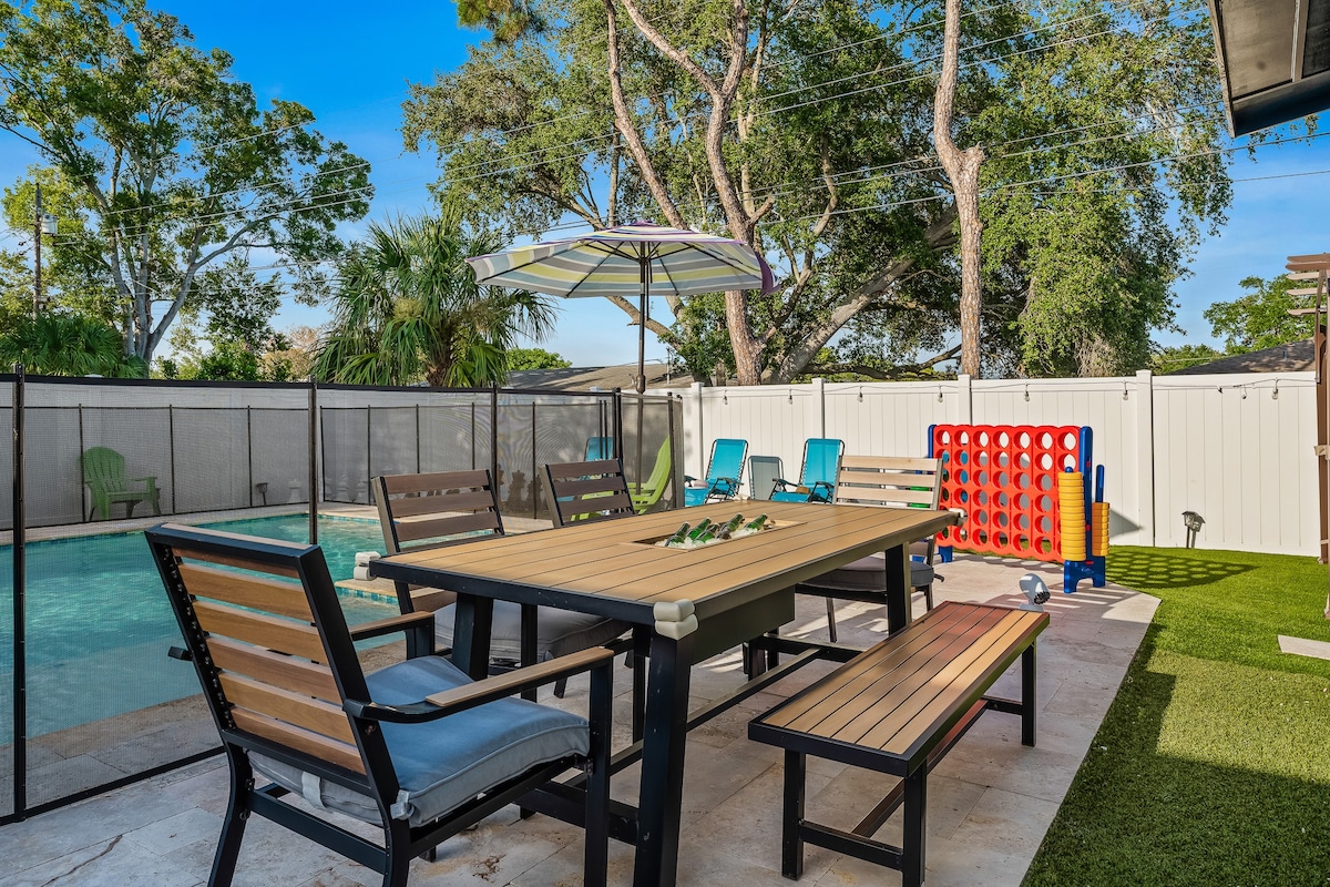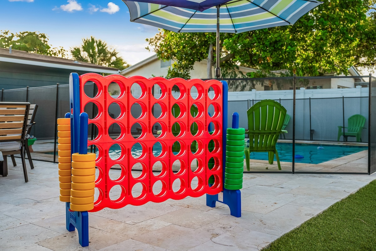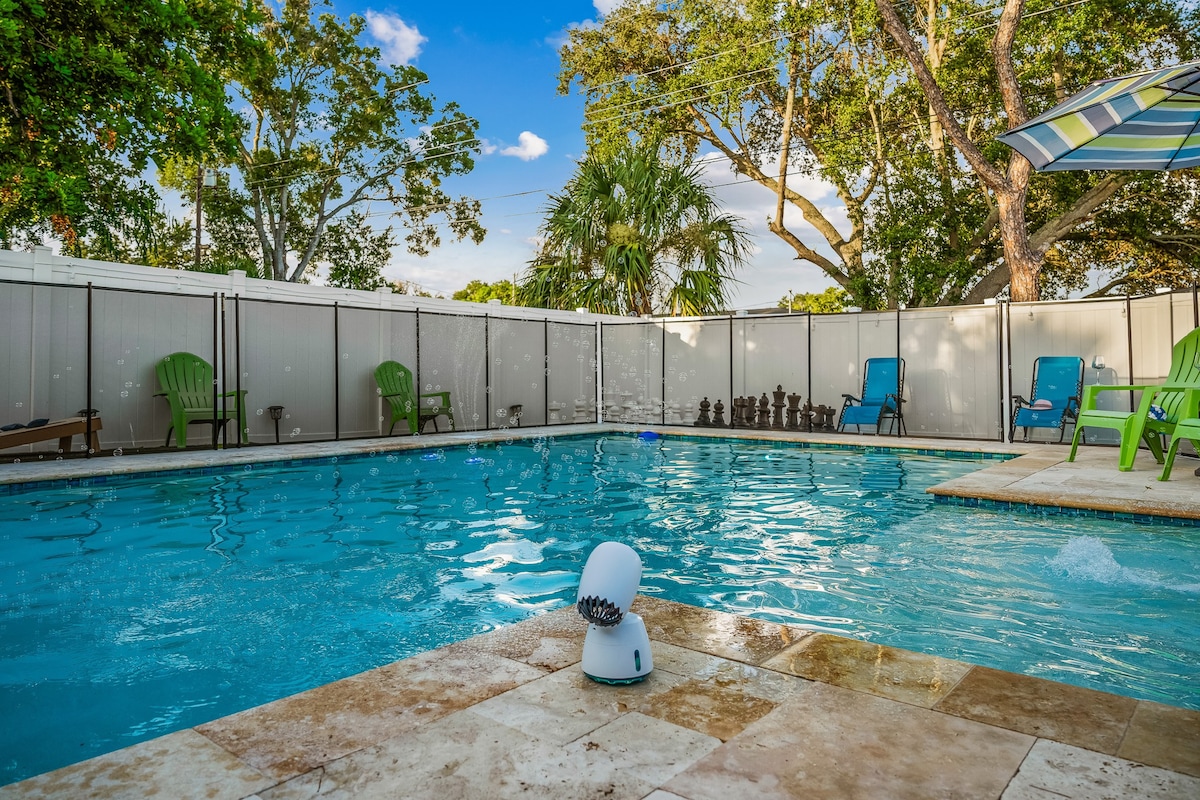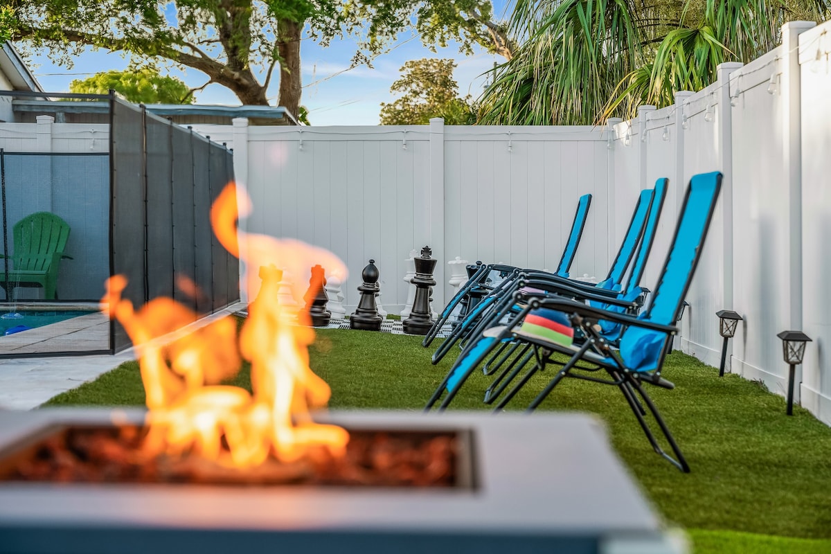 Quiet Residential Area: Located just 5 minutes from Indian Shores Beach, this peaceful neighborhood offers a relaxing environment. Only 2 minutes away, Seminole City Park is perfect for kids to enjoy the playgrounds or for a stroll by the lake.