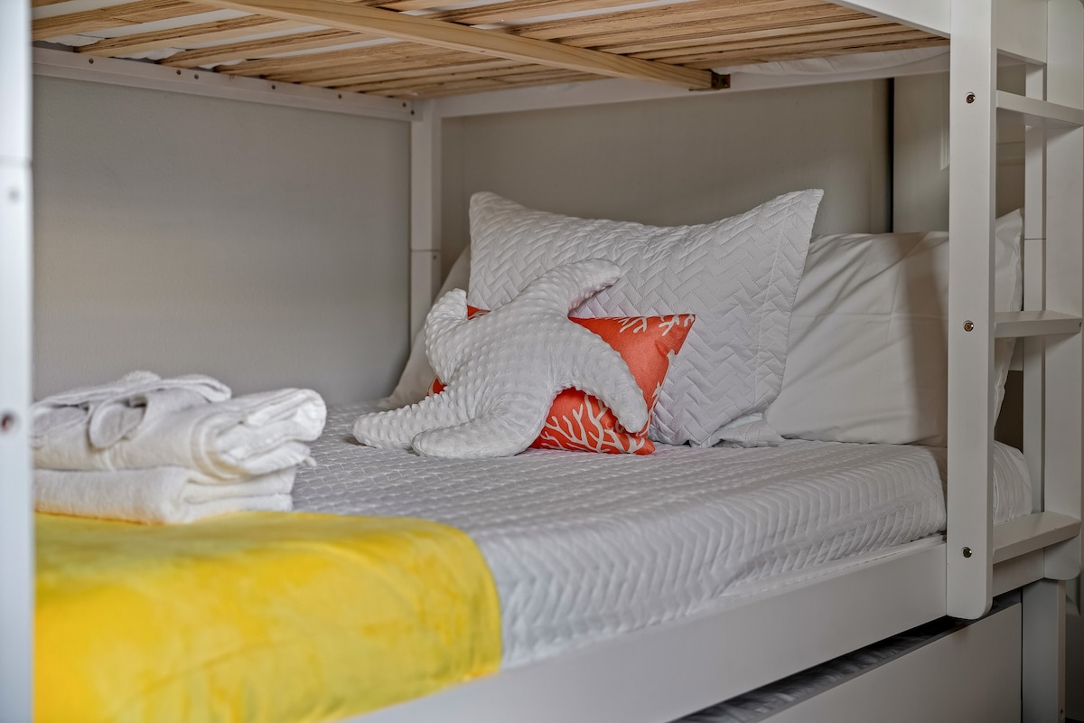 • Bunk Room: The third bedroom includes a bunk bed with three full beds and a TV, ideal for kids or friends sharing lively stories.